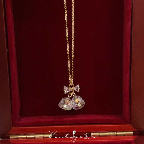 Crystal Bow Bell Necklace Gold Chain Pitite Xmas Necklace Christmas Gift Ideas