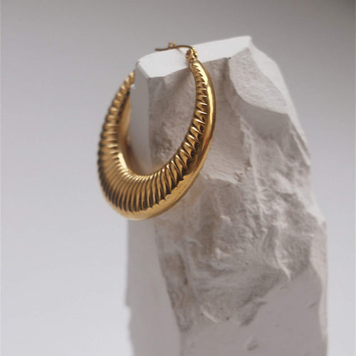 Gold and Silver Natural Wave texture Drop Earrings Big Round Glossy Earrings with S925 Hoop Pin