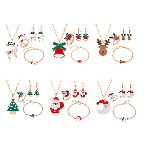 Set of 4 | Christmas Necklace Bracelet Earrings and Ring Christmas Costume Jewelry GiftSale