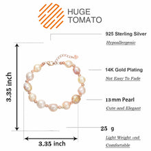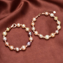 This gorgeous baroque pearl bracelet consists of 10-11mm big freshwater pearls with a natural luster. All mixed color irregular pearls are hand-picked. The length of the bracelet is approx. 19.5cm. The clasp is 14k gold-plated, allergy-free, and nickel free.