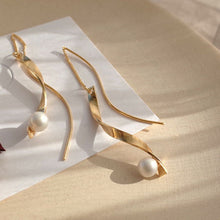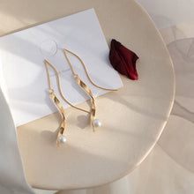 6MM Pearl Spiral Earring | Long Dangling Earrings S Shape Earrings | Gold White Pearl Earrings