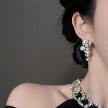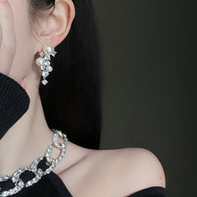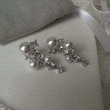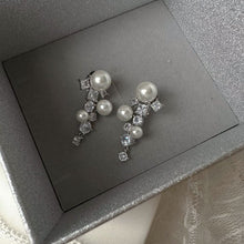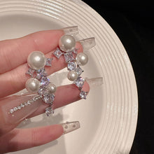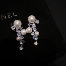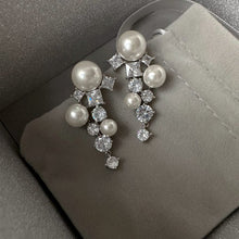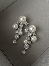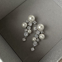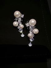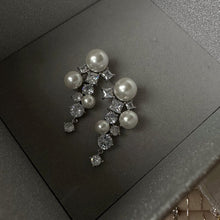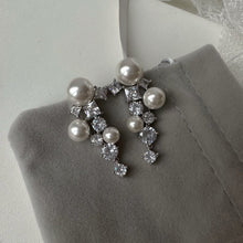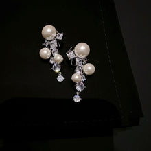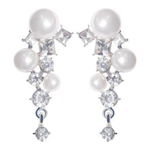 Pearl and Crystal Long Earrings Silver Grape Design Pearl Dangling Earrings with Silver Pin