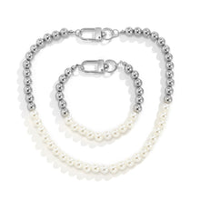 These mens pearl jewelry set includes a men pearl necklace and a mens pearl bracelet. Mens pearl necklace and pearl bracelet mens are all made of 10mm faux pearls and go with 10mm gold and silver artificial beads. If you are looking for mens hip hop pearl chains, you should try these pearl bracelets and pearl necklaces for men. The gold mens pearl necklace and pearl bracelet men is classic hip-pop jewelry, which adds a bright touch to neutral looks and breaks up the tedious tone, suitable for those who like tones of black, gray, and navy. The silver pearl necklace is also the essential mens hip hop pearl chain for those who want to layer chains. It well balances the color of the cloth and enriches details to the blank between the neck and collar. It is friendly to those who prefer light colors of white, and gray.