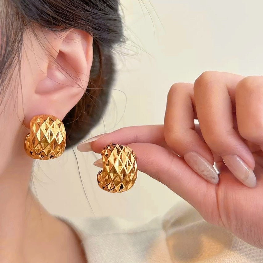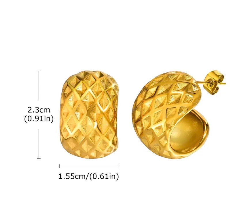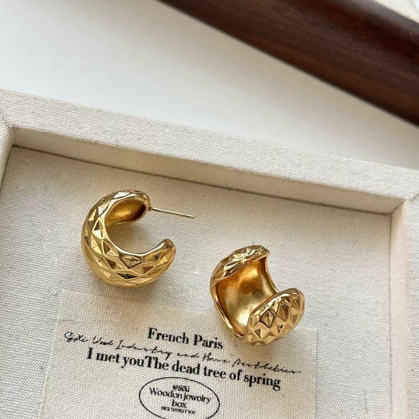 Big Gold Chunky Hoop Earrings 14K Gold Plated Wide Band Earrings with s925 Silver Pin