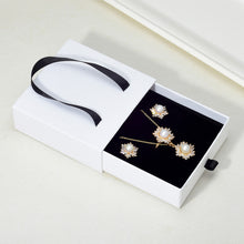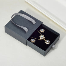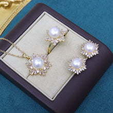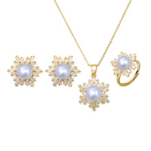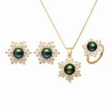 This real pearl jewelry set is designed based on the shape of snowflakes. Because of their shape and color, snowflakes are often considered unique, white, sacred and the symbol of rebirth. The black-green pearl conveys the sign of hope, luck, nature, vigor, and a new start. A shiny black green pearl is right in the middle of a piece of crystal snowflake, just like a new plant in the snow. Perfect for elegant style, these snowflake-theme pearl diamond earrings, pearl rings, and pearl pendants are not only sophisticated jewelry but also meaningful artwork.
