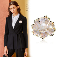 The shell pearl peony brooch is a high-end and delicate piece of jewelry that draws inspiration from the peony flower. Thanks to its vivid flower design and the white pearl in the middle, the brooch exudes an elegant and sophisticated style. This brooch is suitable for individuals who appreciate high-end fashion and want to add a touch of sophistication to their wardrobe. The elegant design makes it perfect for formal events, weddings, and daily wear.