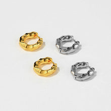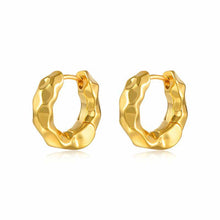 Die wellenförmigen kleinen Creolen weisen unregelmäßige Vertiefungen auf der Oberfläche auf, die mehrere reflektierende Oberflächen erzeugen. Goldene Huggie-Ohrringe mit diesem Design glänzen heller als normale Creolen. Die Feinheiten und feinen Details dieser Huggie-Creolen lassen Sie auf einer Party auffallen. Sie haben die Wahl zwischen goldenen und silbernen Huggie-Creolen.