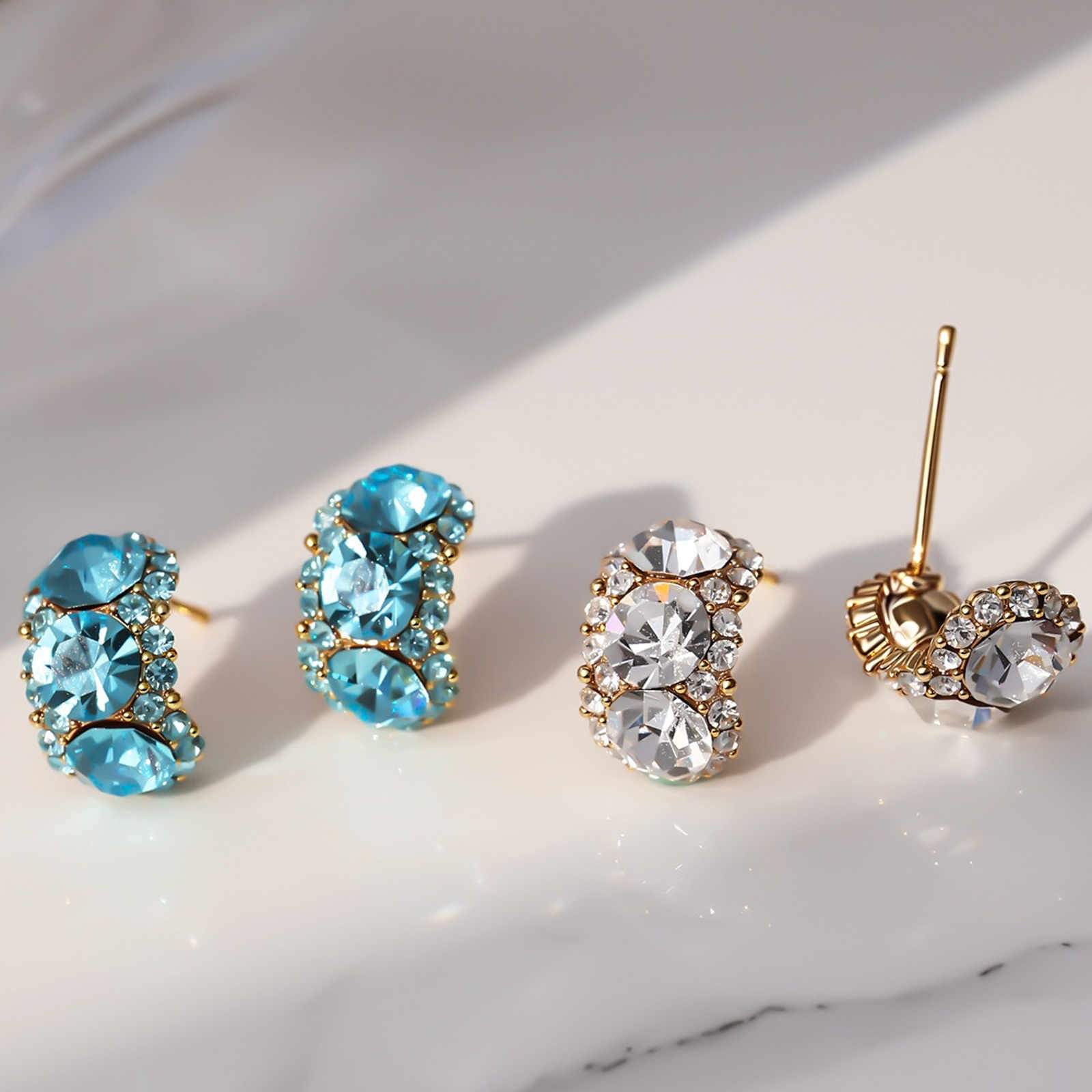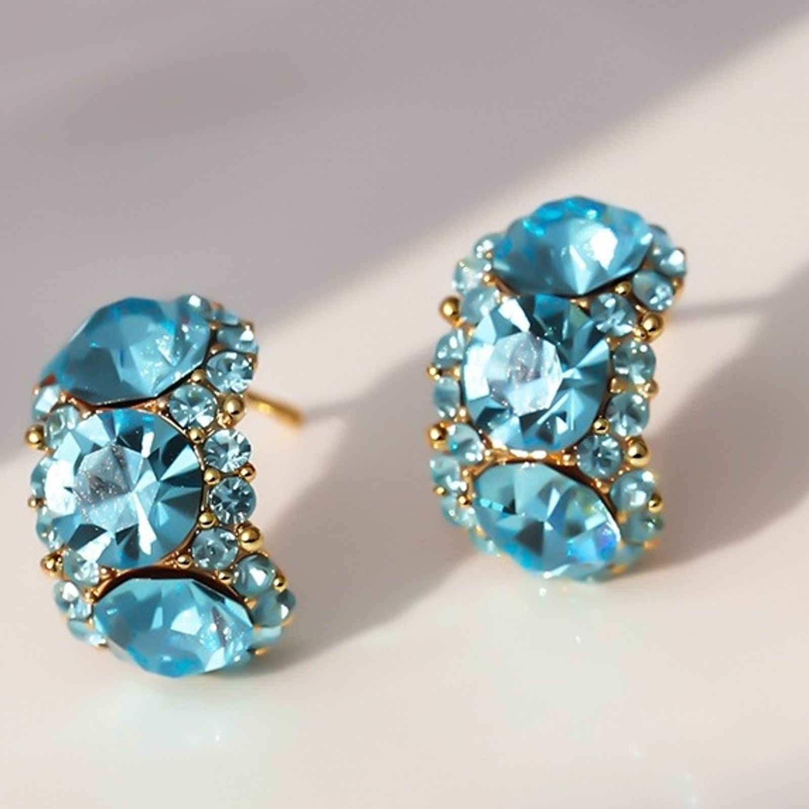 Crystal Hoop Earrings Peridot Aquamarine Small Hoop Earrings with S925 SIlver Pin