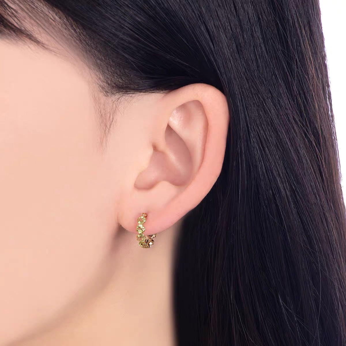 Dieses Paar Ohrringe mit grünem Peridot wurde von einem originellen Schmuckhersteller entworfen und zeigt einen lebendigen, jungen Stil. Der grüne Teil ist ein Smaragdstein und jeder Ohrring hat 7 Steine. Die Smaragdohrringe sind zierlich und passen zu jedem Outfitstil.
