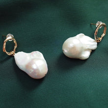 These real pearl earrings will be a great addition to a wedding dress or any formal outfit. Saltwater baroque pearls are precious, let alone those super big AAA baroque pearls. This pair of baroque pearl in gold settings are ideal for the modern woman who wants to make a statement.