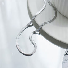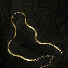 As the name suggests, the gold snake chain necklace is made of metal, but it gets its name because it's flexible like a snake and fits your neck perfectly. The surface of the flat snake chain necklace is so smooth that you can see it shining from any angle. You can pair a snake chain necklace gold with any long necklace to add layers and detail. Even if you wear it on its own, the snake chain choker can be an eye-catching piece to make your outfit look simple and stylish. Therefore, the snake chain is a must-have item for necklace lovers.