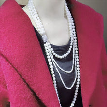 Long multi strand pearl necklace