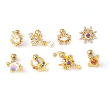 20G Gold Ear Studs Titanium Internally Threaded Double Gem Single Cartilage Earring Crystal Ear Stud Body Jewelry