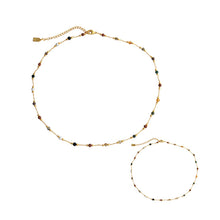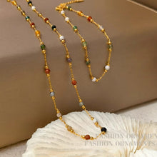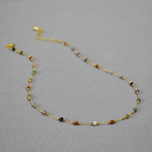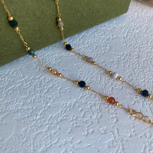 This beautiful stone necklace chain is truly the fashionest style in 2024. The colorful beads are made of natural stones, which are cut as crystals. The thin, elegant chain is 14k gold plated, which shines vividly and is friendly to sensitive skin. This multicolor stone necklace has a perfect length of 44cm, which can clearly show your style on the neck.