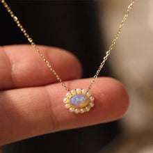 Opal Necklace Pendant Pearl Surrounded with Rose Gold Chain 45cm