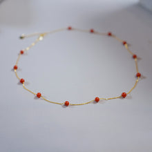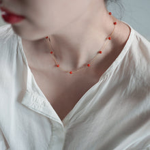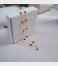 Red Stone Necklace Gold Chain Red Bead Agate stone Necklace