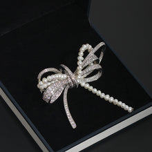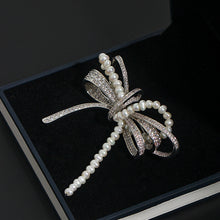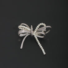 Luxury Bowknot Brooch Pin Freshwater Pearl and Crystal Brooch Gold and Silver