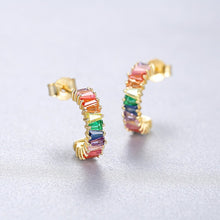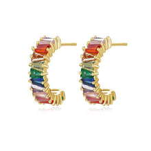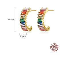 Colorful Crystal Earrings Half Hoop Zricon Earrings with Silver Pin