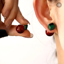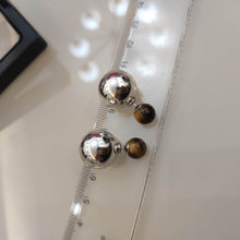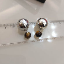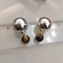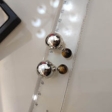 Silver Metal Stud Double Ball Earrings Tiger Eye Stone Earrings with S925 Silver Pin