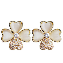 White Four Leaf Clover Earrings Stud Crystal Four Leaf Clover Earrings with S925 Silver Pins