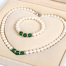 Finish off any outfit with a gorgeous pearl set. It includes a green jade & freshwater pearl necklace, a pearl bracelet and one pair of pearl earrings. With a wide online collection of striking vintage-inspired necklace designs, lovingly made with freshwater pearls and precious stones, treat yourself or a loved one to a piece of pearl jewelry today. Ideal as a gift or to enhance any outfit, our online range includes chunky, and classic white pearl necklaces for a bold vintage look, to more elegant styles such as our simple pearl drop necklace with S925 Silver.