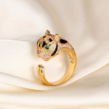 Sculpted Panther Ring 18K Gold Diamond Leopard Ring Adjustable Size