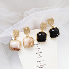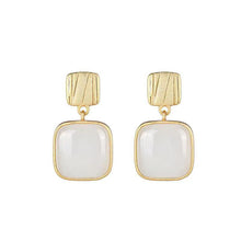 Moonstone Earrings with Silver Pin | Square Gold Gemstone Drop Earrings | 4 Color Available