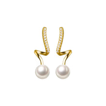 Twisted Pearl Drop Earrings Gold and Silver Crystal Clasp Pearl Earrings with Silver Pin