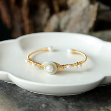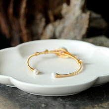 Cultured Freshwater Pearl Bangle Jade Bracelet in 14k Gold Over Sterling Silver 7"