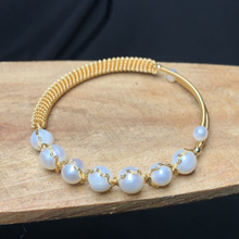 Akoya Pearl Bangle with Gold Settings Cultured Freshwater Pearl Bangle Bracelet in 14k Gold Over Sterling Silver Size Adjustable