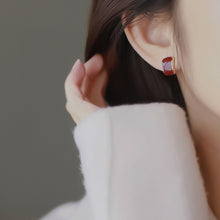 Maple Red Hoop Earrings Small Gold Plated Earring Clip & S925 Silver Pin