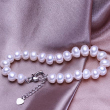 This freshwater pearl bracelet is available in 3 beautiful colors: white, pink, and purple. It helps to add a touch of elegance to any outfit. Handcrafted with S925 Silver, you will enjoy the timeless look of pearl jewelry. Choose a bracelet size, select your favorite color, and indulge in the glamour of freshwater pearls.