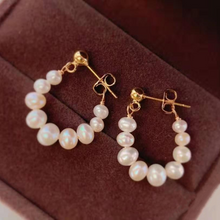 These pearl hoop earrings look exquisite, dainty, and sweet. It is handmade with a circle of 2-4mm AAA freshwater pearls which carry a thick luster. The end of the freshwater pearl earrings in sterling silver earring studs with 14K gold plated. In the proper length of 25 mm, these real pearl earrings are fine for daily and semiformal occasions.