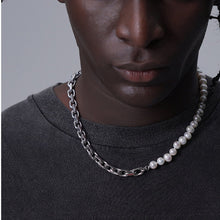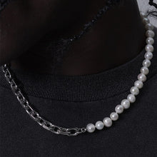 Mens Freshwater Pearl Necklace Chain | Splicing Pearl Necklace Men | Half Pearl Half Chain Necklace for Men