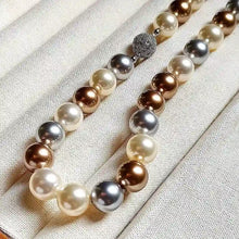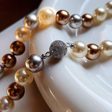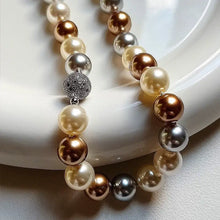 These high-luster shell pearl necklaces are a must-have in 2025. The necklace consists of multicolor 10mm shell pearls and a silver crystal clasp. The pearls are shiny and super round, and share the same sense of reality as freshwater pearls.
