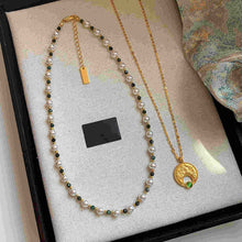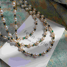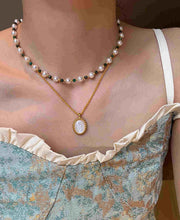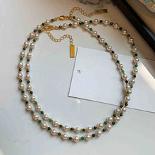 Shell Pearl with Natural Green Stone Necklace Double Layer Necklace