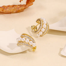 At first glance, these pearl huggie earrings look like a combination of four huggie earrings. Actually, the pearl huggie hoop earrings have four hoop Huggies: two diamond Huggies and one pearl Huggies which are separated from each other. With this design, it is easy to create a stylish stack look. That makes the gold pearl huggie earrings statement and perfect for expressing individual personality.