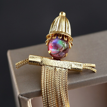 Broche de ópalo estilo country vintage de espantapájaros con oro de 14 quilates