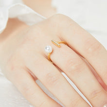 Hay más anillos que anillos de compromiso para mantenerte elegante en tu vida diaria. Los pequeños diamantes incrustados en un extremo del anillo de diamantes de oro muestran una apariencia concisa pero no simple. La única perla brillante crea una apariencia en capas, como si usaras dos anillos. Es amigable para aquellos que quieren estar a la moda pero no quieren tener demasiados anillos.