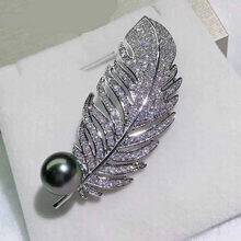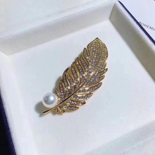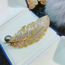 Freshwater Pearl Brooch Pin Gold and Silver Feather Brooch with Crystal and Pearl