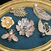 Vintage Style Freshwater Brooch for Women 14K Gold Flower Bee Feather Lapel Pin Brooch