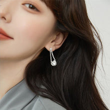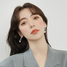 Los aretes colgantes de plata con diamantes de imitación son amigables con la piel sensible