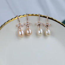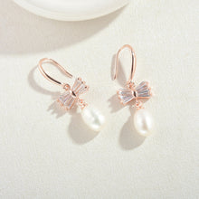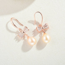 Dainty bowknot pearl drop earrings | Freshwater pearl earrings