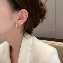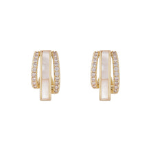 Estos pequeños aros de oro con incrustaciones de nácar también tienen un color discreto y un brillo suave. La suave concha madre y el elegante diamante logran el equilibrio perfecto, lujoso y elegante. Ya sea que te guste el estilo clásico, cálido o neutro, estos aretes de nácar dorados serán una declaración de buen gusto y agregarán un toque minimalista a tus conjuntos.