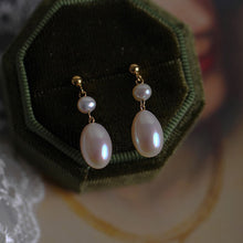 Pendientes ovalados de perlas de agua dulce en un estilo minimalista