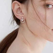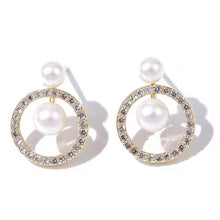 This pair of freshwater pearl earrings have a double pearl earring design and a crystal & gold halo drop to give you a classic and vintage look. As we specialize in real pearls, each freshwater pearl earring will be naturally unique. 3 pearl colors to choose from: purple, white, or pink freshwater pearls.
