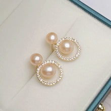 Freshwater Pearl Drop Earrings Crystal Halo Earrings in 14K Yellow Gold Plated Setting (9mm Pearl)