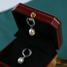 Freshwater Cultured Pearl and Diamond Dangle Earring in Sterling Silver Hoop Clasp(8-9mm)