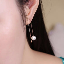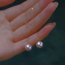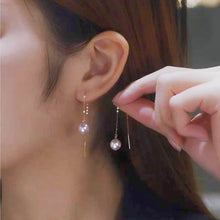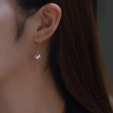 La línea está hecha de plata 925 y está chapada en oro de 18k. Es ajustable para que puedas mantener la perla en cualquier posición. Los pendientes son maravillosos pendientes colgantes que combinan con vestidos. También es un hermoso pendiente de perlas con borlas si tiras de la perla hasta el final.