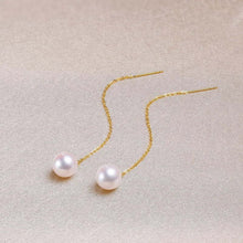 Aretes lineales de perlas reales de primera calidad | Pendientes colgantes largos de perlas lineales en oro